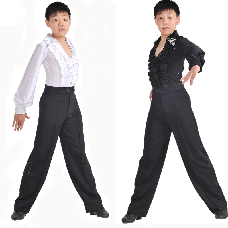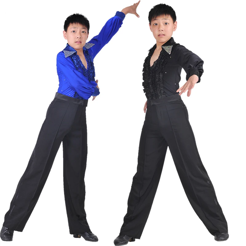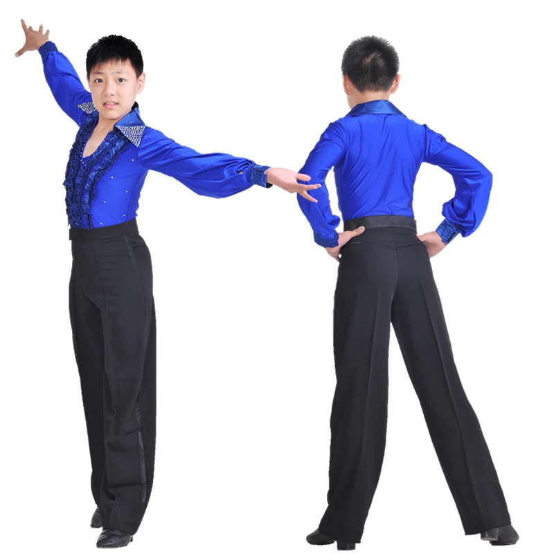 Hot Sale Classical Boys Ballroom Dance Clothing Blue Black White Lantern Sleeve Latin Dance Costumes