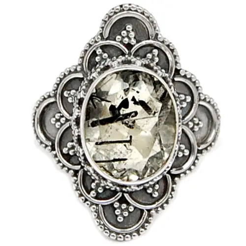 BEST SELLER Hand Made Genuine Black Rutile Ring 100% 925 Sterling Silver Jewelry Size:7 AR0321