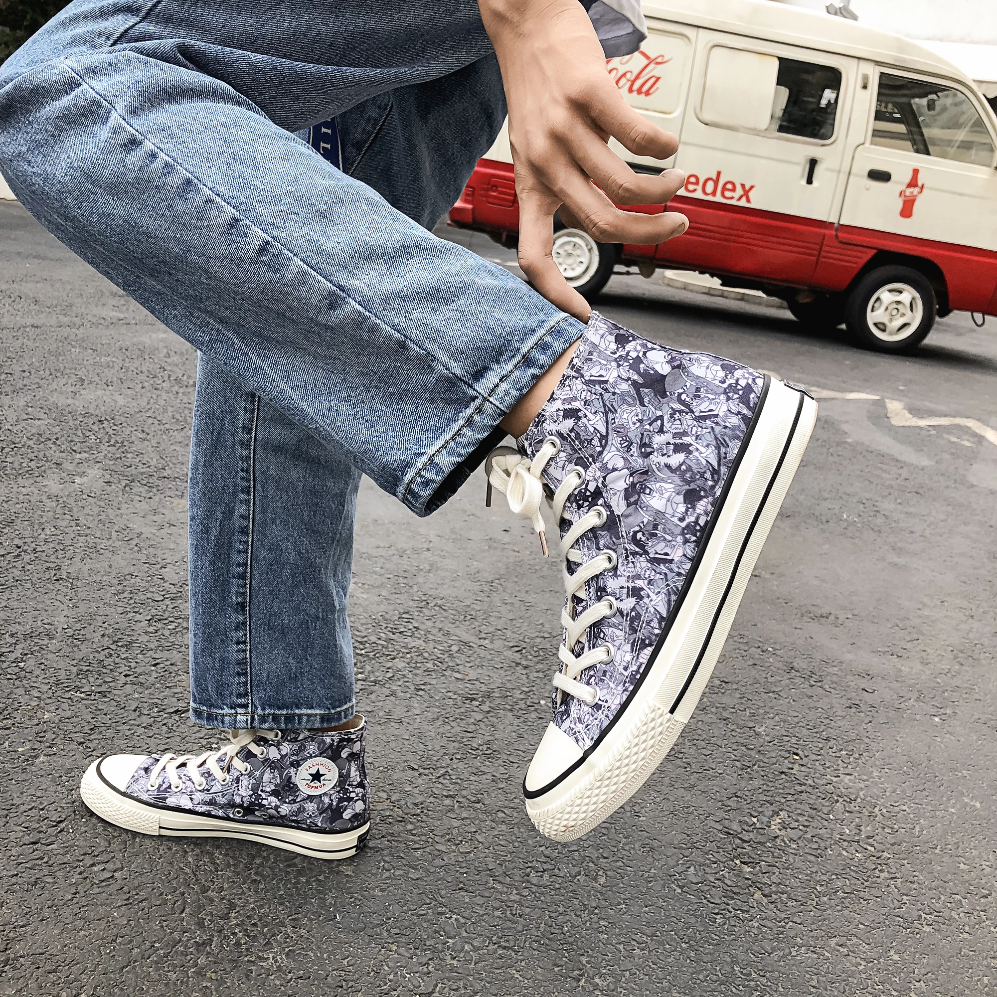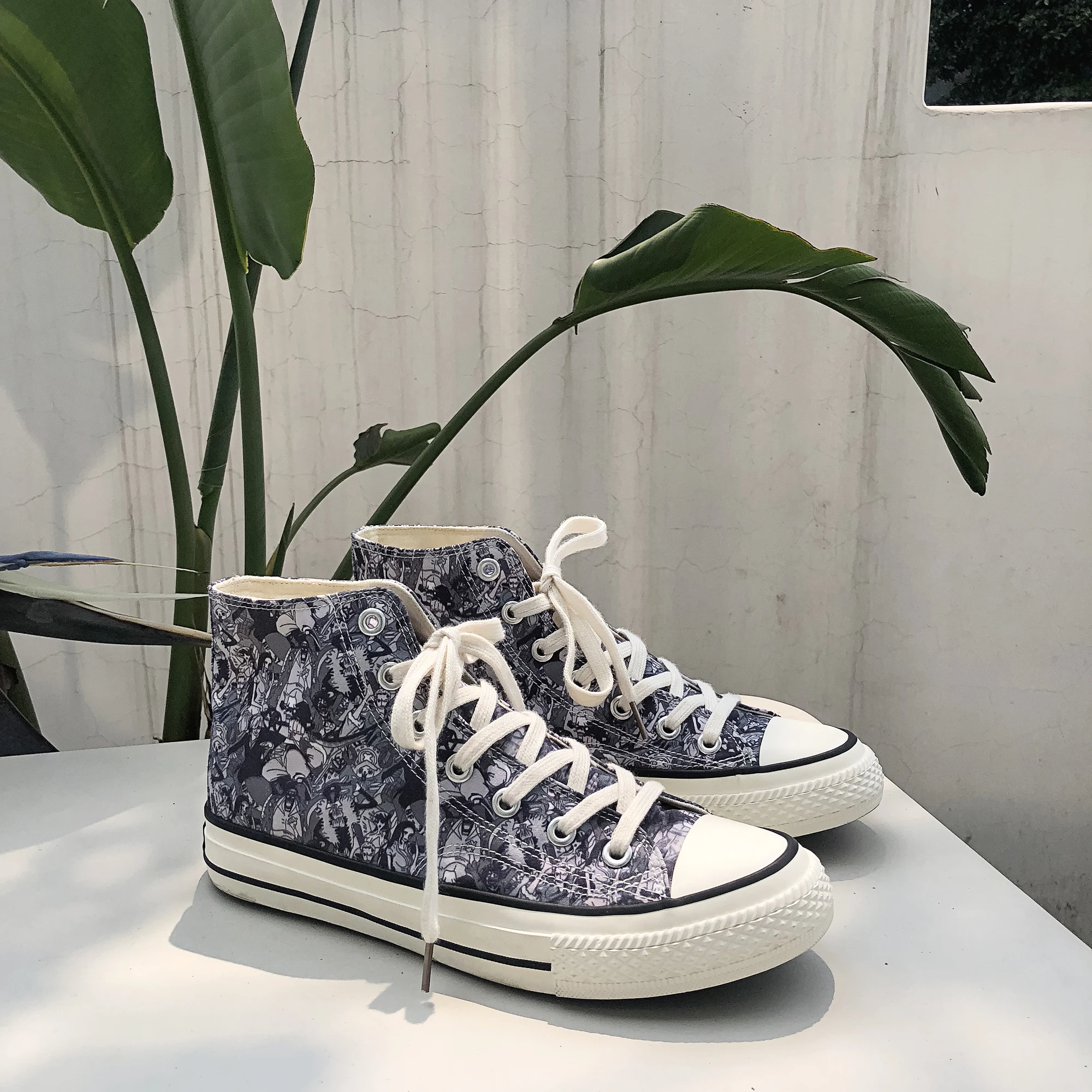High top canvas shoes female students hand-painted classic graffiti casual breathable couple of sum