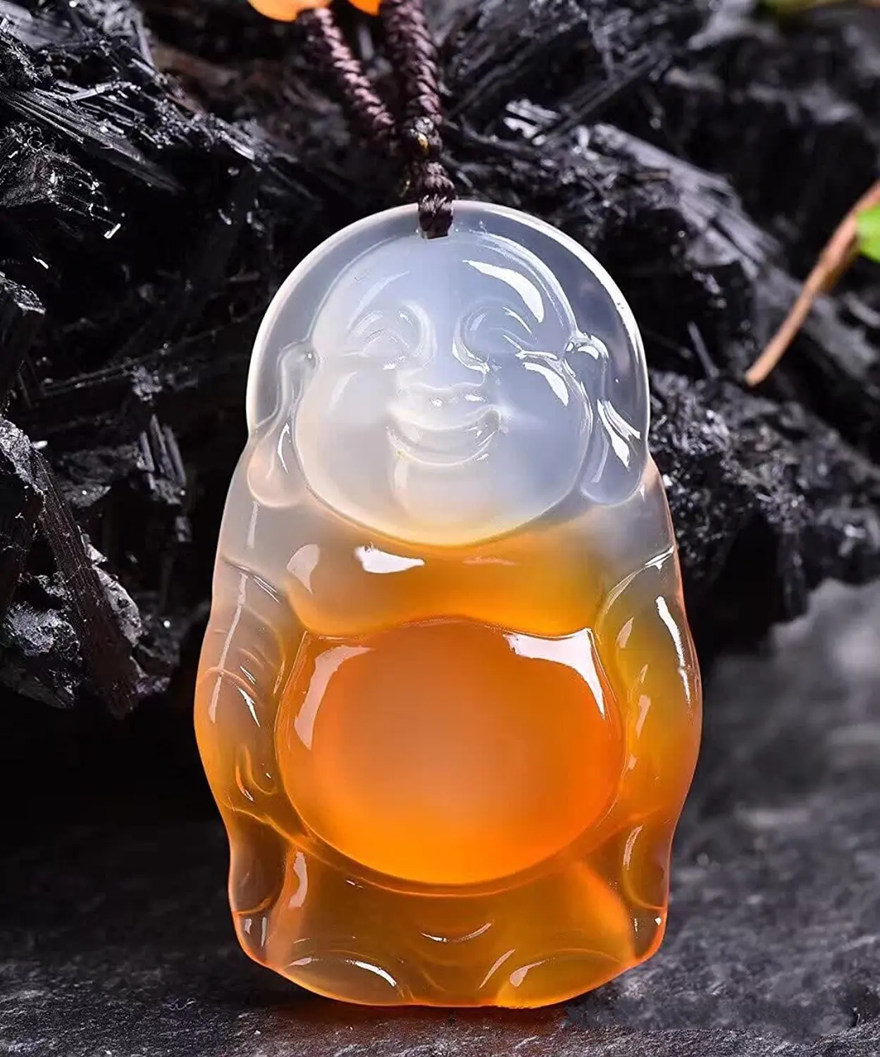 Koraba Fine Jewelry Natural Agate Manual Sculpture Lucky Happy Laughter Maitreya Buddha Pendants Am