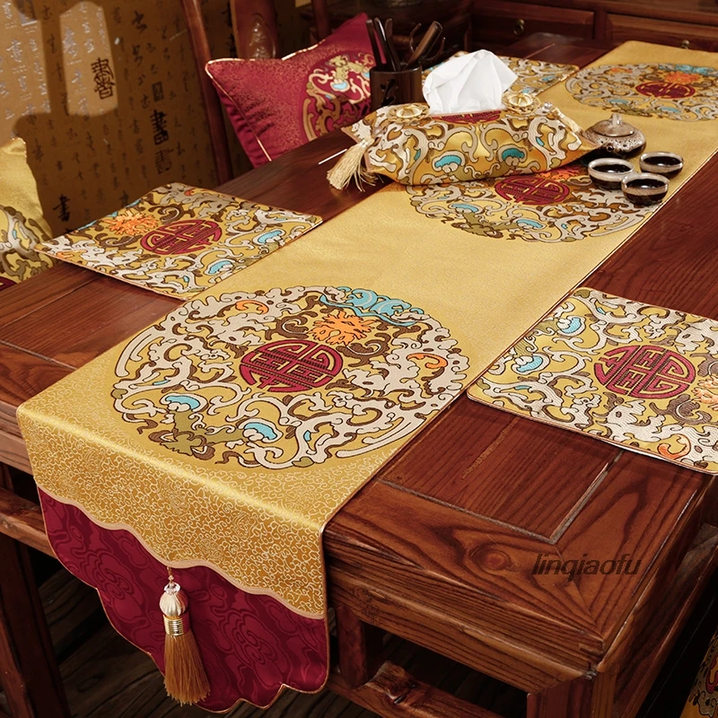 New Chinese modern minimalist table flag Classical tablecloth living room dining coffee table cloth