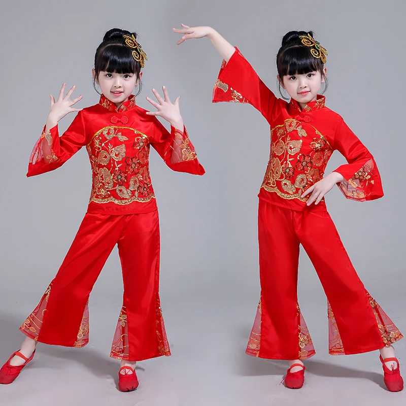 Review Top Yangko Dance Costume Chinese Folk Dance Costume Children's Waist Drum Dance Wear Classical Fan Show