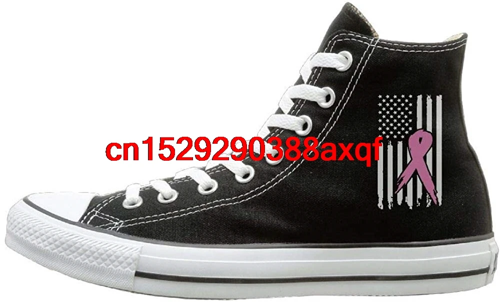 HOT Sale Men's Women's Classic High Top Lace Up Canvas ShoeBreast Cancer Ribbon USA Flag Awareness-1 Trainer
