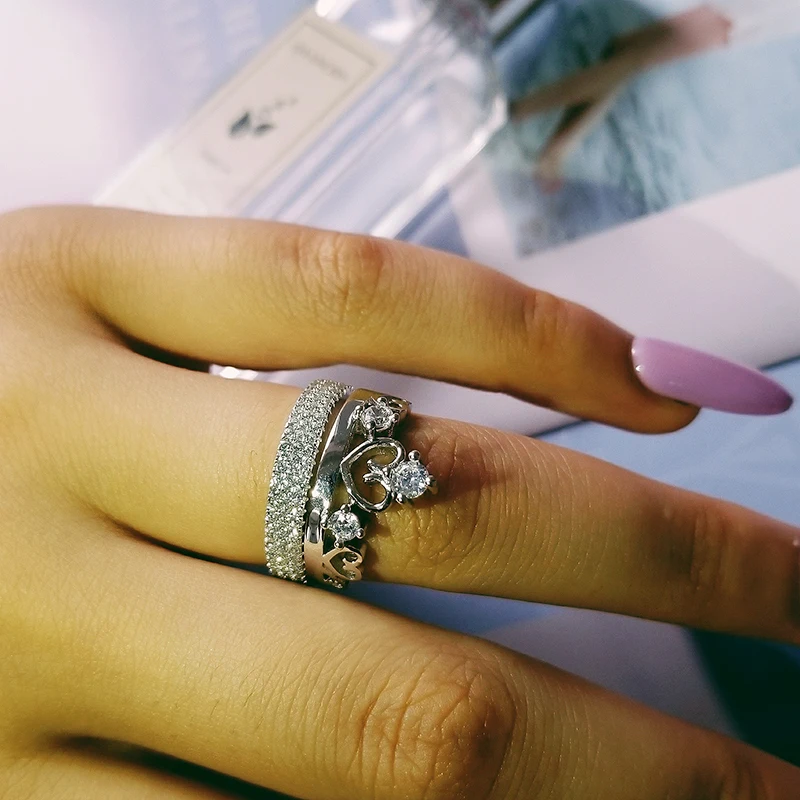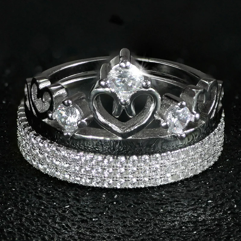 Moonso Sterling Silver 925 Rings For Women 2 Ct Rings 2-Pc Princess Cut Wedding Engagement Jewelry