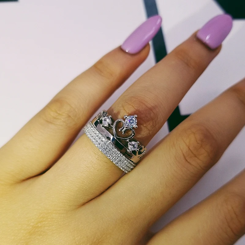 TOP Moonso Sterling Silver 925 Rings For Women 2 Ct Rings 2-Pc Princess Cut Wedding Engagement Jewelry