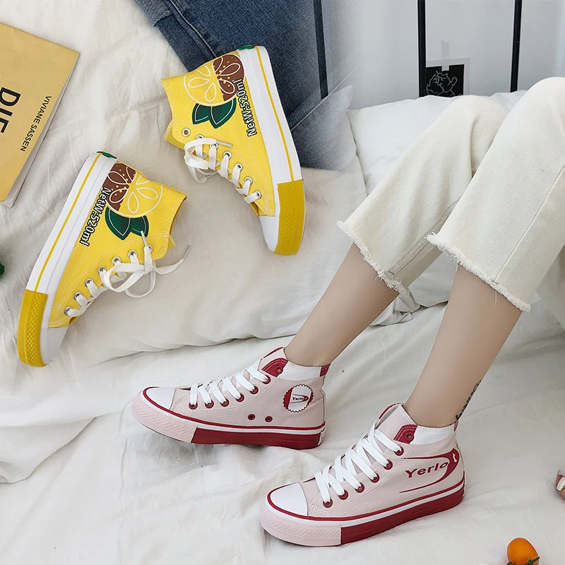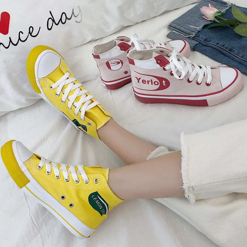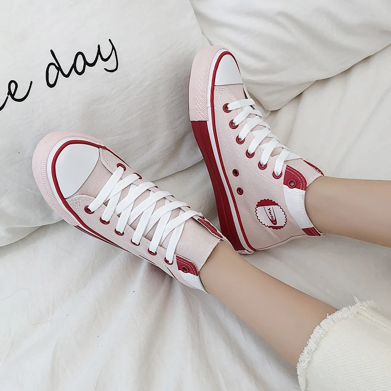 New autumn High Quality Classic Women Canvas Color Matching Shoes High Top Flats Women Vulcanized S