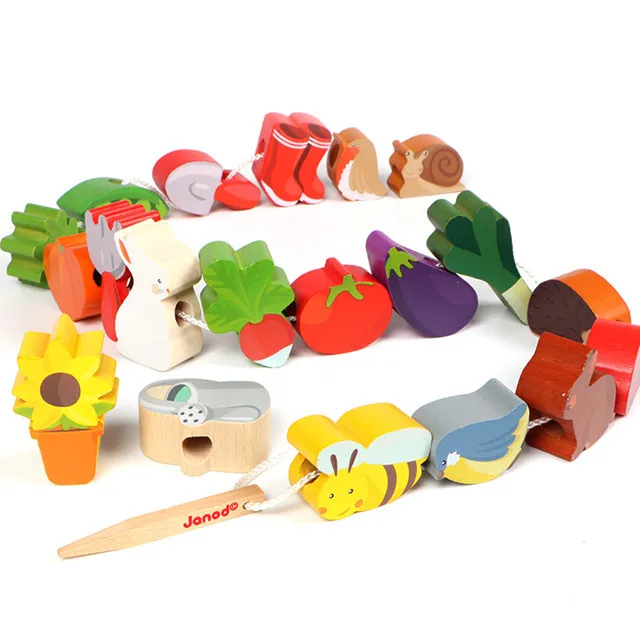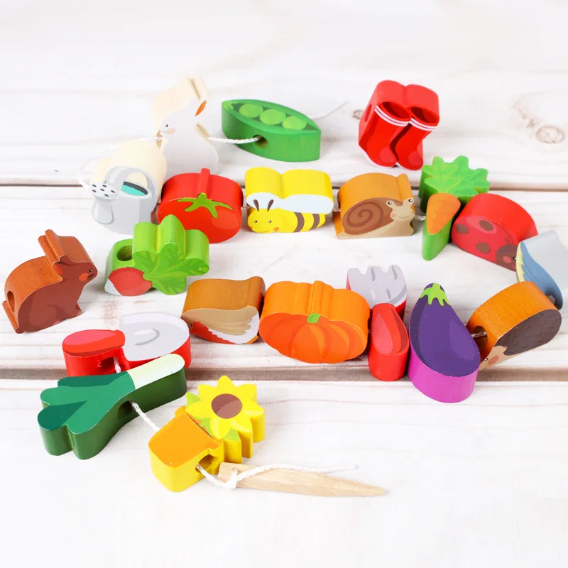 Classic Wood Large Particles Beaded Bracelet 1-3-5-Year-Old Fun Wooden Threading Building Blocks An