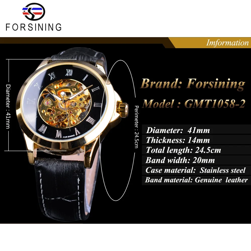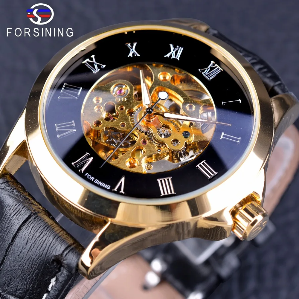 ORIGINAL Forsining Roman Number Display Golden Movement Open Work Retro Classic Men Watch Top Brand Luxury A