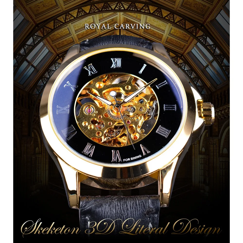 Forsining Roman Number Display Golden Movement Open Work Retro Classic Men Watch Top Brand Luxury A